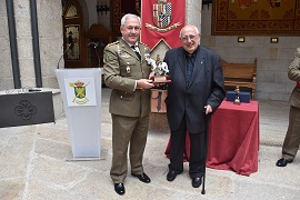 A continuación, hizo entrega al Abad de la Colegiata de Santa María del Campo y sacerdote oficiante de las misas de las Patronas de Intendencia desde hace 52 años de un recuerdo consistente en una figura que representa al teniente Carrillo de Albornoz cuando se hizo cargo del Estandarte a las tropas de Intendencia, en Melilla, en 1923. El coronel Piqueras también entregó al padre Fuciños el historial militar de su padre: Finalmente, tomó la palabra el general Sánchez quien tuvo un emotivo recuerdo hacia la funcionaria Elvira Méndez Álvarez, la teniente coronel María Antonia Barreiro Cereijo y el comandante Juan Luis Peña de Castro fallecidos en el último año, felicitó al personal del Cuerpo de Intendencia con motivo de la celebración de su Patrona y tras finalizar sus palabras entregó al Padre Fuciños una figura que representa al Furriel de los Tercios de Flandes (siglo XVII). La misión del Cabo Furriel consistía en auxiliar al Sargento Mayor en la organización de los alojamientos del Tercio. Tenía la responsabilidad del almacenamiento y la redistribución de los bagajes que el Tercio precisaba para cumplir sus cometidos y que constituían la Munición Real (víveres, armamento, vestidos, materiales de construcción, municiones, etc.).