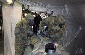 Entre estos elementos expuestos se encontraba una Formación Sanitaria de Tratamiento (FST) tipo “E”, el Aula de Formación Sanitaria, la Estación Sanitaria de Descontaminación NBQ y la Pista de Adiestramiento Sanitario.