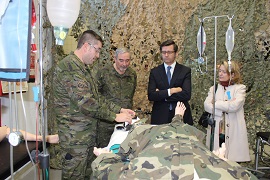 Durante el transcurso de la visita, miembros de la Agrupación de Sanidad nº1 (AGRUSAN Nº1) llevaron a cabo diversos ejercicios prácticos y de simulación con el fin de mostrar la operatividad de cada uno de estos elementos.