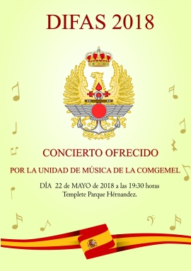 Dentro de las actividades previstas para la celebración del DIFAS 2018, se ha incluido, como es ya habitual, un concierto de música, interpretado por la Unidad de Música de la Comandancia General de Melilla.