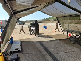 Los alumnos tuvieron la oportunidad de ver por primera vez desplegadas diferentes formaciones sanitarias, como por ejemplo una Célula de Coordinación Sanitaria (CECOSAN), diferentes Estaciones de Apoyo Sanitario (ROLES): un Role 2E, 2 Roles 2 B, una estación de descontaminación y un equipo de apoyo logístico sanitario. Además, pudieron comprobar los procedimientos de atención sanitaria a diferentes bajas en las diferentes formaciones sanitarias de tratamiento mencionadas y sus correspondientes procesos de evacuación sanitaria.