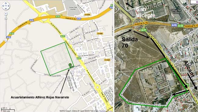 El Acuartelamiento Aferez Rojas Navarrete sede del Mando de Operaciones Especiales se encuentra ubicado en el Bario de Rabasa cercano al centro de la ciudad de Alicante y muy bien comunicado debido a su cercania con la autovia del mediterraneo la cual une a la comunidad Valenciana con el resto de comunidades colindantes con ella. Los principales medios de transportes con que cuenta la ciudad de Alicante y hacen muy accesible el acceso a la Base desde cualquier punto de la misma.