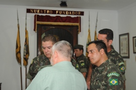 La delegación, liderada por el coronel brasileño Jacintho M., agregado militar de defensa en España, al que acompañaban tres coroneles y dos tenientes coroneles, fue recibida por el general Leza, Jefe de la BRILEG y el Tcol. De Meer, Jefe del Estado Mayor.