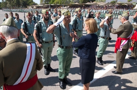 La Ministra de Defensa, María Dolores de Cospedal, ha presidido esta mañana los actos conmemorativos del 95 aniversario de la creación de La Legión en la base Álvarez de Sotomayor de Viator (Almería).