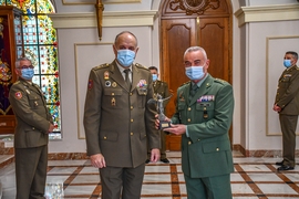 La Brigada de La Legión se proclama vencedora de la 11ª edición del Trofeo GEJEME (General Jefe del Estado Mayor del Ejército) 2021. Un Trofeo que recogió en representación el jefe de la Brigada, el general Melchor Marín Elvira de manos del jefe del Mando de Adiestramiento y Doctrina (MADOC), el teniente general Jerónimo de Gregorio y Monmeneu, en un sencillo acto en el Salón del Trono del Establecimiento Capitán General (Convento de San Francisco) de Granada. Dicho acto se realizó teniendo en cuenta las medidas sanitarias en vigor, en la lucha contra la COVID19.