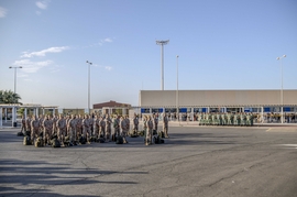 En la despedida del personal de la primera rotación se desplazó al aeropuerto, el general jefe de la Brigada de La Legión, Melchor Marín Elvira, familiares, los jefes de Unidad y compañeros.
