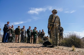 Una delegación compuesta por 38 agregados militares extranjeros y acompañados por personal del EME, DIVPLA y SETEC han realizado una visita a la Brigada Rey Alfonso XIII II de La Legión en Viator (Almería), la mañana del 07 de marzo de 2024.