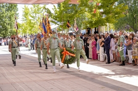 Durante la parada militar, unos 300 ciudadanos expresaron pública e individualmente su compromiso de lealtad a España prometiendo o jurando, mediante el hecho simbólico del beso a la Bandera, ante la Enseña Nacional del Tercio Don Juan de Austria, con base en Viator (Almería).