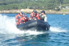 Los efectivos del Ejército de Tierra, trece en total, que formarán parte en la próxima Campaña Antártica, están realizando sus prácticas de navegación en el Puerto Pedras Negras, en la localidad de San Vicente de O Grove.