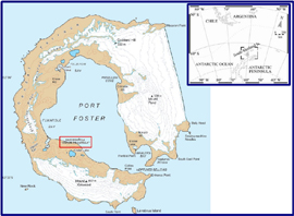 El motivo de que tres sismólogos acompañen a los militares viene determinado por las características del entorno en que se mueven los investigadores, a los que se apoya logísticamente. La Isla Decepción, en el archipiélago de las islas Shetland del Sur, a escasos cien kilómetros al norte del continente antártico y a más de mil de la costa sudamericana más próxima, es, en realidad, el cráter de un volcán emergido, cuya caldera se encuentra inundada, debido a que parte del cráter está por debajo del nivel del mar (ver imagen). Se trata de un volcán “durmiente”, pues mantiene ciertos signos de actividad, como la presencia de aguas termales, y ha entrado en actividad esporádicamente.