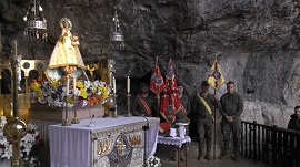 En el lugar histórico y religioso de la capilla de la Santa Cueva de Nuestra Señora la Virgen de Covadonga se ha llevado a cabo la celebración de una ceremonia litúrgica a la que ha asistido una representación del GTLP “Toledo” que desplegará en Líbano. Durante esta celebración se hizo una ofrenda a “la Santina” como símbolo del patronazgo de la Virgen sobre el Regimiento, y también se ha procedido con la bendición de los “detente bala” del GTLP “Toledo”, donados desinteresadamente por el Sr. José Luis Muñiz, habitual colaborador del Regimiento.