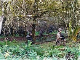 • Pelotón realizando un ejercicio en las zonas boscosas del CMT. Cabo Noval