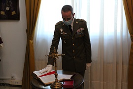 • Momento en el que el coronel Gutiérrez Alcalá realiza el juramento del cargo.