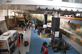 La visita al estand de la Brigada se iniciaba en un Punto de Información (PIN), en base a una Unidad Móvil de Información (UMIC) que proporcionaba información relativa al Ejército de Tierra, a la Unidades de la Brigada y sobre el stand expuesto en la Feria.
