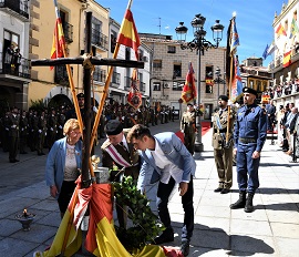 Después de que las casi ciento treinta personas demostraron su compromiso con la Bandera, se realizó como es tradición, un homenaje a los que dieron su vida por España en el que se depositó una corona de laurel, de la mano de dos jurandos, delante del altar montado para tal efecto.