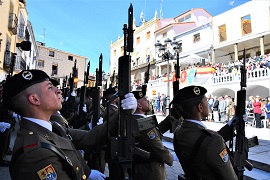 El pasado sábado 19 de marzo tuvo lugar en la Plaza mayor de Jaraíz de la Vera la Jura de Bandera para personal civil organizada por la Brigada “Extremadura” XI. Este solemne acto fue presidido por el general jefe de esta brigada, el cual fue acompañado en la presidencia por el delegado de gobierno de Extremadura y el alcalde de la localidad cacereña. El estandarte ante el que se llevó a cabo el Juramento o Promesa de los casi 130 jurandos fue la del Regimiento “Castilla” n.º 16 de la Brigada Extremadura XI.