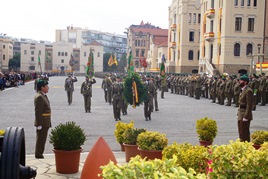 El Coronel Jefe del Regimiento, Rafael Morenza Tato, pronunció un emotivo discurso en el que afirmó que "todo enemigo de España supo, sabe y sabrá lo que es capaz de hacer un hijo de la Patria para salvar el honor de la Bandera”, y finalizó rogando “a la Inmaculada y a la Virgen de Montserrat que guíen y protejan nuestras conductas al servicio de España y de los españoles”.