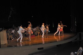 La segunda parte del concierto se dedicó a la interpretación y baile de diferentes estilos latinos nacidos en países al otro lado del atlántico con los que nos une un mismo acervo lingüístico y cultural. El tango Por una cabeza, la bossa Latin Mood, o la banda de sonora de la película La Misión, fueron algunas de las interpretaciones. Las jóvenes del ballet de la escuela de danza Marisa Yudes, cerraron el concierto con los aires de la zarzuela La Boda de Luis Alonso, y la Unidad de Música finalizó con el famoso pasodoble de La Banderita, cantado por un entregado y entusiasta público egarense.