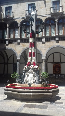L’ou com balla (el huevo que baila) es una de las celebraciones más singulares de la festividad del Corpus en la ciudad condal. Esta costumbre popular consiste en hacer bailar un huevo en los surtidores de las fuentes de claustros, patios y jardines que se adornan para la ocasión con motivos florales.