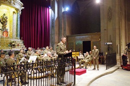 En la Iglesia Castrense, que registró un lleno completo, la Unidad de Música de la Inspección General del Ejército, dirigida por el capitán músico Armando Bernabéu Lázaro, demostró una vez más su calidad interpretando variadas piezas como pasodobles, suites, fanfarrias, oberturas, operas y marchas militares, de autores tan significados como Bert Appermont, Dimitri Shostakovich, Emilio Cebrián, Jan Van Der Roost, Leonard Bernstein, Quintín Esquembre y Richard Wagner.