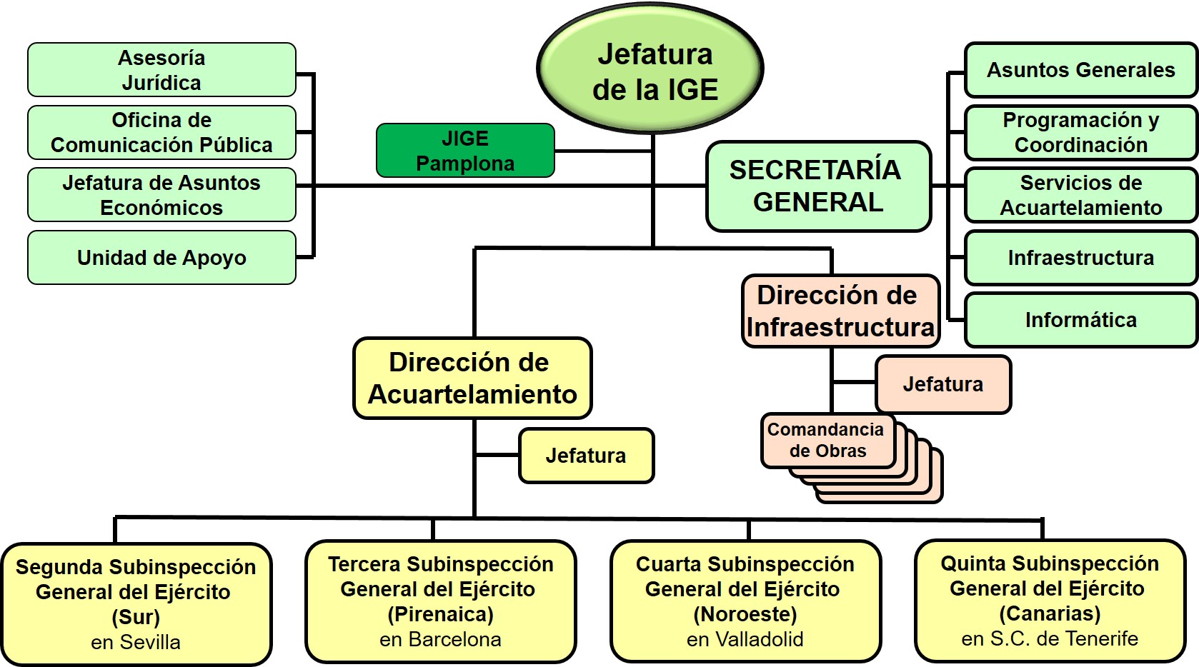 Dentro de la estructura básica del Ejército de Tierra la IGE se encuentra dentro del Apoyo a la fuerza.