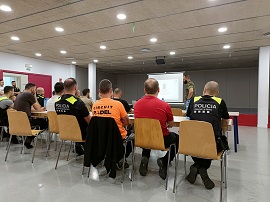 La Guardia Municipal de Vallgorguina y la Policía Local de Montgat, ambos pueblos de la región de Barcelona, acudieron al Acuartelamiento 'El Bruch' de la ciudad condal sede del R.I. 'Barcelona' 63 para impartir el curso de 'Intervención de alto riesgo' a personal del Regimiento.