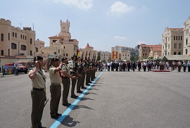 El peso de las exhibiciones, de defensa personal, de la escuadra de gastadores, de la banda de guerra y las exposiciones estáticas de armamento, material y vehículos recayó sobre el BIMT. 'Cataluña' I/63,que junto a la plana de mando del Regimiento forman esta joven pero ya experimentada unidad.