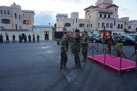 Asimismo y como hito relevante, el coronel hizo entrega del título de miembro honorífico del regimiento al teniente coronel Orpinell, capellán mayor, por su colaboración, disponibilidad y cercanía con la unidad, mediante la imposición, de forma simbólica, de la prenda de cabeza reglamentaria del regimiento.
