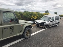Dos militares del Regimiento de Artillería de Campaña nº11 prestan su ayuda en un accidente de trafico