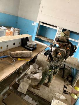 Los tres primeros días de las maniobras, la sección de zapadores centró sus esfuerzos en realizar instrucción de búsqueda militar en edificaciones aprovechando las instalaciones que ofrece la Base Empecinado y reconocimiento de itinerarios.