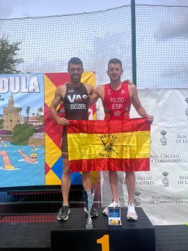 Por su parte, el sargento Escudero debutó de manera individual en el Campeonato del Ejército de Tierra, la segunda de las pruebas, compitiendo también en distancia olímpica: 1500 m a nado, 40 km en bicicleta y 10 km de carrera. Después de intensos meses de preparación y de disputar un Ironman, afrontó el reto cargado de motivación y, a pesar de la dureza de las pruebas, alcanzó un meritorio puesto 16 en la clasificación general.