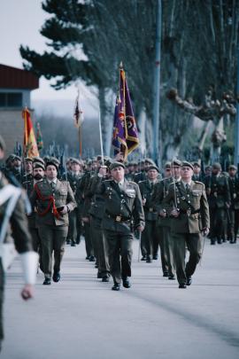 Posteriormente, el coronel Logroño dirigió unas palabras a los asistentes en conmemoración del aniversario. Durante su discurso, destacó el excelente trabajo que nuestros zapadores están llevando a cabo en la Operación eFP en Letonia, así como su valiosa contribución habiendo ya liderado la impartición de catorce módulos de formación en el marco de la Operación EUMAM UA. Además, subrayó que los diferentes ejercicios propios y otros en apoyo a otras Unidades que se desarrollarán durante el año benefician el perfeccionamiento de nuestro nivel de instrucción, lo que favorece la plena disponibilidad de la Unidad para afrontar cualquier misión que el Mando nos asigne.