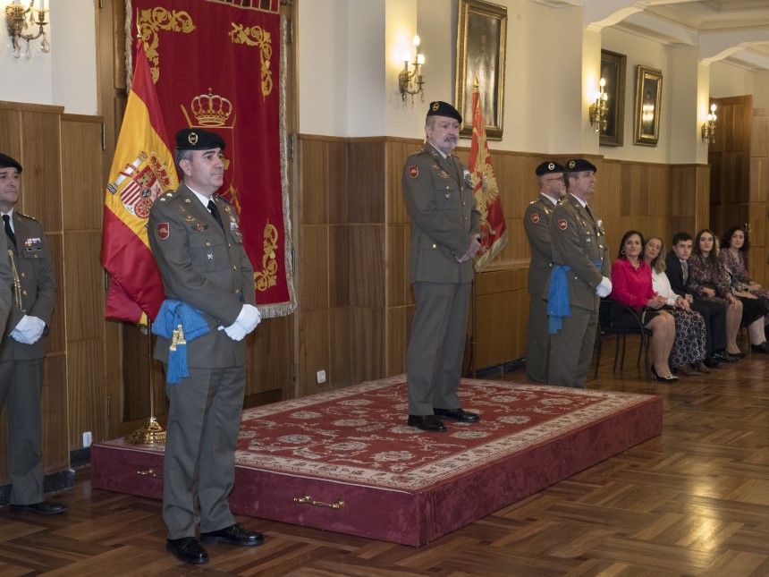 Acto de entrega del mando de la Jefatura de Estado Mayor del Cuartel General de la División San Marcial al teniente coronel de artillería Juan Javier Pérez Martín.