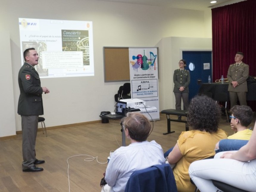 El Teniente Músico José Javier Bascoy, director de la Unidad de Música de la División San Marcial impartió una charla informativa destinada a mostrar al alumnado de enseñanzas profesionales de Música la faceta del músico militar.
