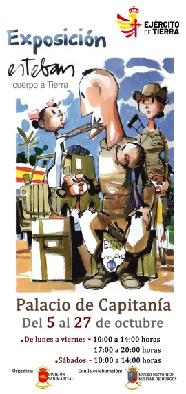 Desde el día 5 hasta el 27 de octubre el Palacio de Capitanía de Burgos, acoge la exposición “Esteban cuerpo a tierra”, es una exposición monográfica sobre el ilustrados y humorista gráfico José Manuel Esteban Guijarro.