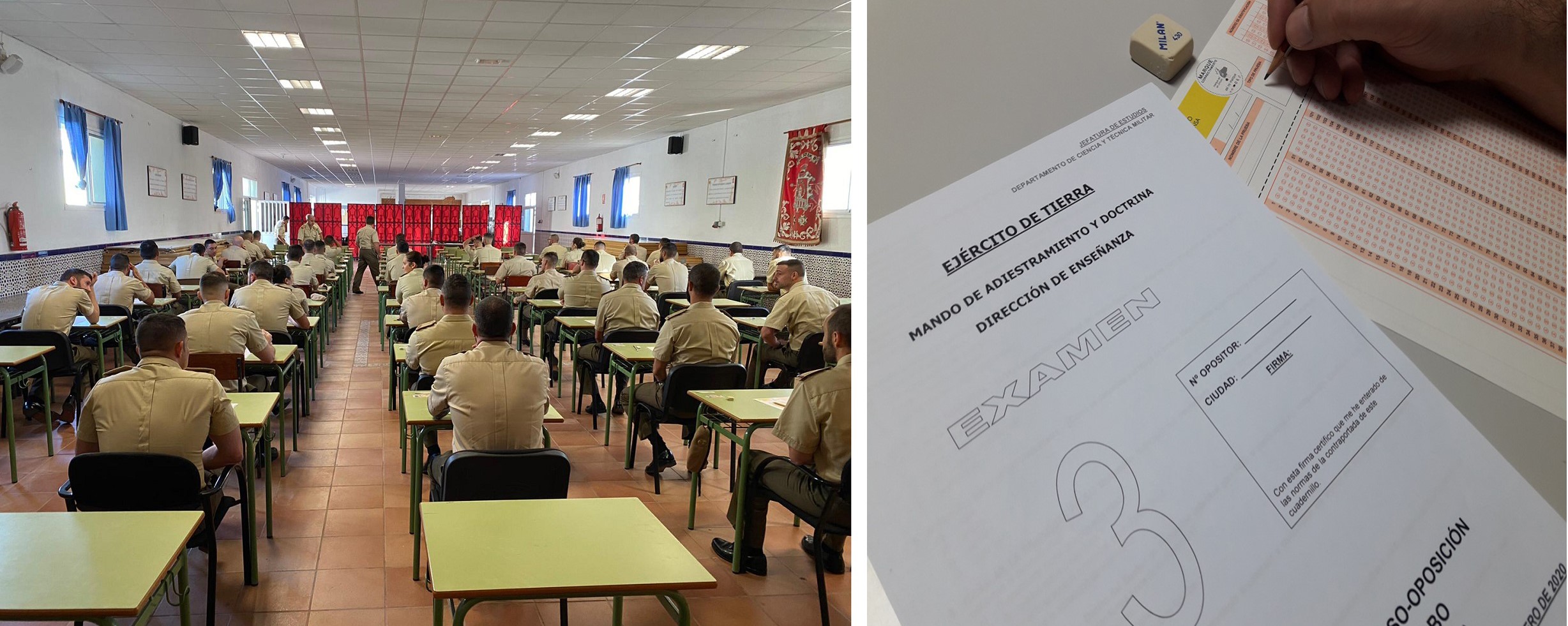 En la fase de Oposición consistente en un examen de 50 preguntas tipo test sobre materia estrictamente militar y cuyo temario, orientado a la preparación para el nuevo empleo, está cargado de forma permanente en Intranet permitiendo así la preparación del examen de forma libre por el aspirante aunque el mes anterior a la realización de la prueba, todos los aspirantes reciben un curso de apoyo de 2 horas diarias de forma presencial en sus Unidades de destino.