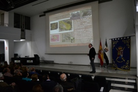 Continuando con los actos programados por el CEFOT 1 y dentro de la XXI Edición del Aula Militar de Cultura, el pasado día 26, en la Sala Clavellinas en Cáceres, tuvo lugar una conferencia cuyo nombre “La Cueva de Santa Ana, los primeros cazadores-recolectores del calerizo”, trata de plasmar la relación geográfica de la Base Santa Ana con ese alcor, en el que también se encuentra la Cueva Santa Ana, parte importante de los yacimientos arqueológicos localizados en la zona del calerizo cacereño.
