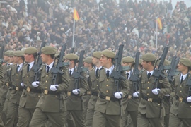 Los soldados estuvieron acompañados por familiares y amigos que abarrotaron las gradas de la explanada de desfiles aunque las condiciones climatológicas no fueron muy favorables.