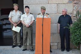 A las 20:00 horas dio comienzo el primer acto en el que una Sección de Honores, compuesta por personal y Banderines del CEFOT 1 realizaron un Arriado de Bandera y un Acto a los Caídos. La Subdelegada del Gobierno en Cáceres y el Coronel Delegado de Defensa en Badajoz fueron los encargados de depositar la Corona en este solemne acto, para posteriormente, despedirse la Sección a paso ligero.