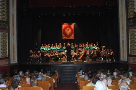 El concierto, que corrió a cargo de la Banda Sinfónica de la Excma. Diputación Provincial de Cáceres bajo la batuta de D. Antonio Luis Suárez, fue de entrada libre y consiguió que cada uno de los espectadores que llenaron el Teatro se emocionara y disfrutara del concierto con la misma pasión que ponía cada músico en sus interpretaciones. Durante su primera parte las piezas del repertorio fueron de música popular, y durante la segunda parte, el Orfeón Cacereño colaboró con dicha Banda Sinfónica en la interpretación diversas piezas populares y militares.