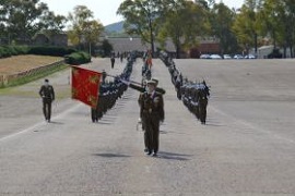 El acto comenzó a las 10:00 horas, con los alumnos formados en las cuatro compañías en las que han estado encuadrados, durante las siete semanas de enseñanza presencial en el Centro.