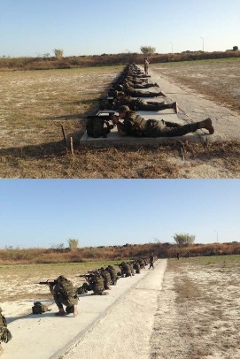 Igualmente, en el Campo de Tiro del Acuartelamiento de Camposoto, se han llevado a cabo los ejercicios de tiro con el FUSA HK G-36E programados en el plan de estudios. Así, han realizado cuatro ejercicios de instrucción, a 50 y 100 metros de distancia, sobre la silueta de 1 metro, adoptando distintas posiciones. Cada línea de tiro, compuesta por 25 alumnos, estaba al mando del Jefe de Sección, auxiliado por los Jefes de pelotón. Como es habitual, antes de comenzar los ejercicios se han recordado a los alumnos las reglas elementales en el manejo de las armas y las medidas de seguridad durante el desarrollo de un ejercicio de tiro, así como, las posibles interrupciones y formas de solucionarlas. Además, siempre contaron con el apoyo de personal especialista en MMA, así como de una ambulancia dotada del material sanitario estipulado para estas actividades y personal titulado en FSET-2.