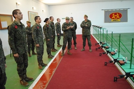 Tras un descanso, el General saludo a los cuadros de mandos y tropa del Centro, trasmitiéndoles el apoyo y el afecto de toda la Dirección de Enseñanza, continuando la inspección del programa y recorriendo las clases teóricas y prácticas programadas, que incluían, entre otras, actividades de orden cerrado, y de orden de combate.