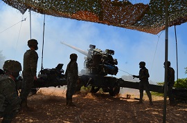 Sargentos alumnos de la Academia de Artillería realizan sus prácticas de tiro de costa