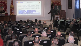 El pasado día 28 de noviembre, el Cap. Marfil, de la ULOG-23, impartió la conferencia "NSPA: Logística OTAN al servicio del ET", con asistencia de mandos de todas las unidades de la COMGECEU.