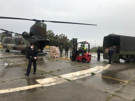 La Policía Militar del BCG, el RING-7 y la ULOg-23 descargaron, custodiaron y entregaron un cargamento de material sanitario traído en un Chinook de las FAMET.