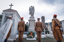 Como colofón a los actos realizados en el cementerio de Santa Catalina se llevó a cabo el último de los homenajes organizado esta vez por la Comandancia General de Ceuta, en el cual formaron todos los Jefes de Unidad de la Plaza acompañados de sus respectivos Guiones, suboficiales mayores y personal de las mismas con traje de época.