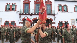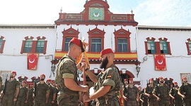 A las 13:00 horas del pasado viernes, día 9 de septiembre, tuvo lugar, en el acuartelamiento “González-Tablas”, el acto de relevo de mando del Tabor “Tetuán I/54”. El acto fue presidido por el coronel Moro Sanjuán Jefe del Grupo de “Regulares de Ceuta” Nº 54 , mientras que la fuerza en formación, al mando del comandante Marí Noguero, estuvo compuesta por: Nuba (banda de guerra) del Grupo de Regulares 54, Música del BON CG de la COMGECEU, Escuadra de Gastadores del Tabor “Tetuán” I/54, Mando y PLMM del Tabor “Tetuán” I/54 y cinco compañías del Tabor “Tetuán” I/54. Tras los honores reglamentarios y revista a la fuerza, la ceremonia se inició con la lectura del artículo de la orden de destino y la fórmula de relevo por el que se entregaba el mando. Acto seguido, se materializó el relevo de mando mediante la entrega del Guion, tras lo que el nuevo Jefe del Tabor dirigió unas palabras a los presentes. En su alocución, el teniente coronel Fernández Vargas quiso comenzar sus palabras agradeciendo al mando la confianza en él depositada al designarle como jefe del Tabor “Tetuán”. Asimismo, agradeció la asistencia de todos los presentes, en especial, a su familia, amigos y compañeros de armas. Y a todos los que han hecho un esfuerzo enorme para poder acompañarle en este día tan señalado. También tuvo palabras para todos los componentes del Tabor "Tetuán”, siendo consciente del compromiso que asume, de lo que se le exige y de lo que se espera de él, haciéndolo con un gran sentido del honor y de responsabilidad ante el reto que se le presenta. Le agradeció al teniente coronel Moreno Monje la excelente y ejemplar labor que ha desempeñado al frente del Tabor, por el relevo efectuado y deseándole toda la suerte y éxitos profesionales en su nueva etapa en la COMGECEU, siendo consciente del listón tan alto que le ha dejado. Aseguró que recibe una Unidad cohesionada e instruida, la cual tiene la capacidad de asumir todas las misiones y cometidos que se le encomienden y que contará siempre con la inquebrantable lealtad y la absoluta disposición para ser empleado en los puestos de mayor riesgo y fatiga. A continuación y para finalizar, se desarrolló el acto en homenaje a los que dieron su vida por España a los acordes de la “Plegaria de Regulares”, ofrendando la corona a los caídos de las Fuerzas Regulares los tenientes coroneles entrante y saliente, se interpretó el Himno de Regulares y se procedió a la dislocación de la parada y adopción del dispositivo de desfile, concluyendo el acto de relevo. ¡FIEL REGULAR! Redacción GREG 54.