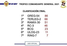 En todos ellos el GREG 54 se ha subido al pódium, obteniendo el primer puesto en cinco y en tres el subcampeonato, lo que le ha llevado a alzarse con el primer puesto en la clasificación final con una puntuación de 86 puntos, 20 por encima del segundo clasificado, el TERLEG-2. El RAMIX-30 se ha hecho con la tercera posición, con 51 puntos.