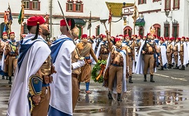 Llegado ese momento, se desarrolló el acto central que no es otro que el homenaje a los que dieron su vida por España, a los acordes de la “Plegaria de Regulares”, en el que el coronel jefe del Grupo de Regulares acompañó a la madre de un Regular y a una representante de la Cruz Roja a depositar la corona. Finalmente, tras la interpretación del “Himno de Regulares”, se procedió a la dislocación de las unidades y posterior desfile ante la tribuna de autoridades.